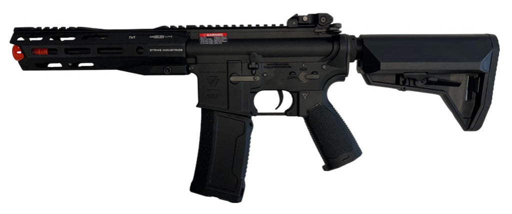 Pre-installed with a Strike Industries 25 angled enhanced pistol grip with aggressive slip resistant texture