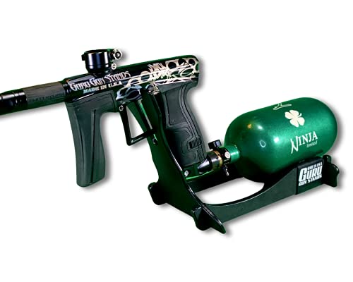 Paintball gun stand. Nice and compact. Once you have a Guru Gun Stand you won't go back. Made with non-abrasive material it will not scratch up your marker. Fits right in your bag without taking up all the room. Much more compact then PVC stands. Gun/marker and tank not included